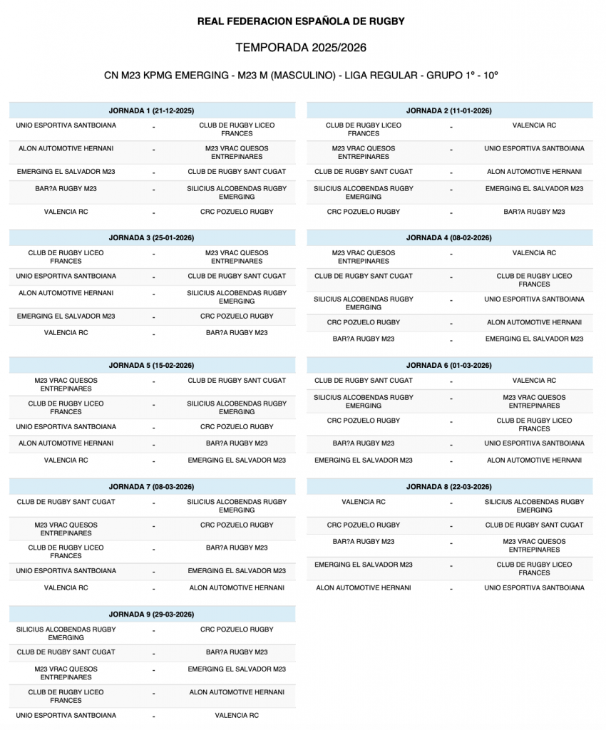 Calendario vuelta S23